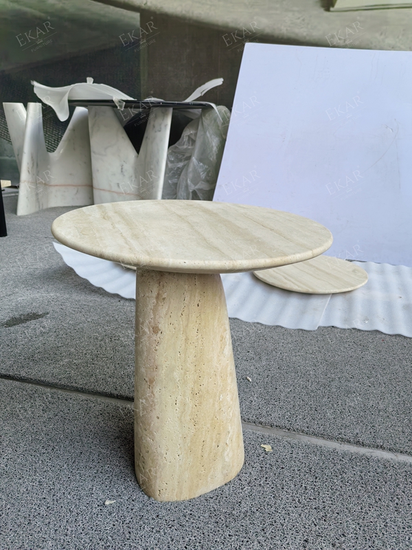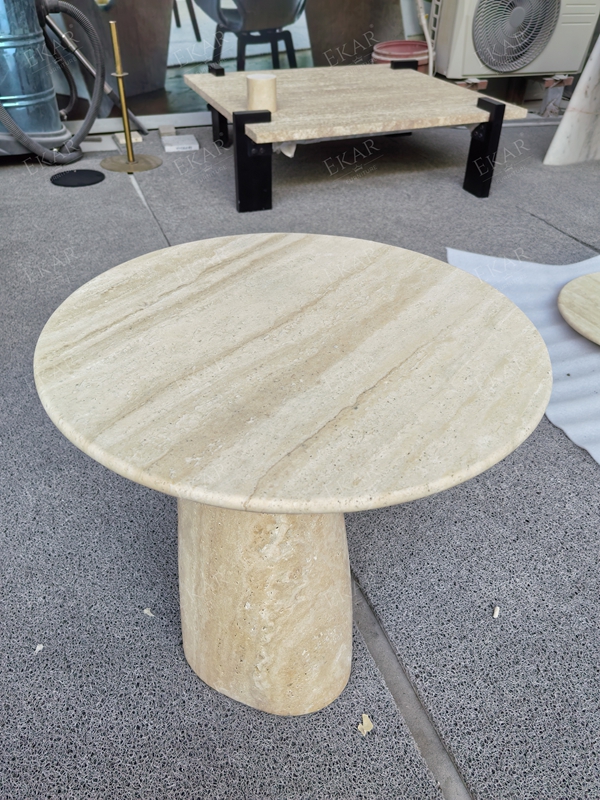 Precision-cut from single-block travertine (1.2" thick) with honed matte finish. Compact 18" diameter design weighs only 28lbs, featuring integrated finger-grip handle for easy relocation. Maintains stone authenticity with natural fissures and <2% water absorption (ASTM C97).
