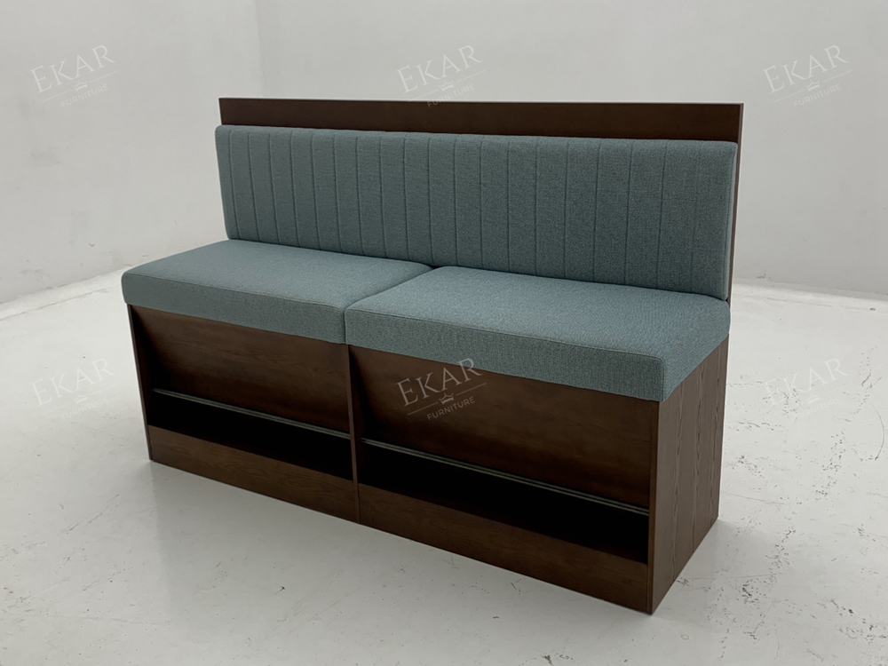 Comfort is key, too. The seat is padded with soft, durable upholstery in neutral tones – think warm beiges, soft grays, or crisp whites – that fits with any decor. Lean back against the wall, and you’ll find it’s just supportive enough to stay comfortable through long meals, but not so stiff that it feels uninviting. It’s the kind of spot where kids will happily sit through dinner, and adults will linger over coffee afterward.