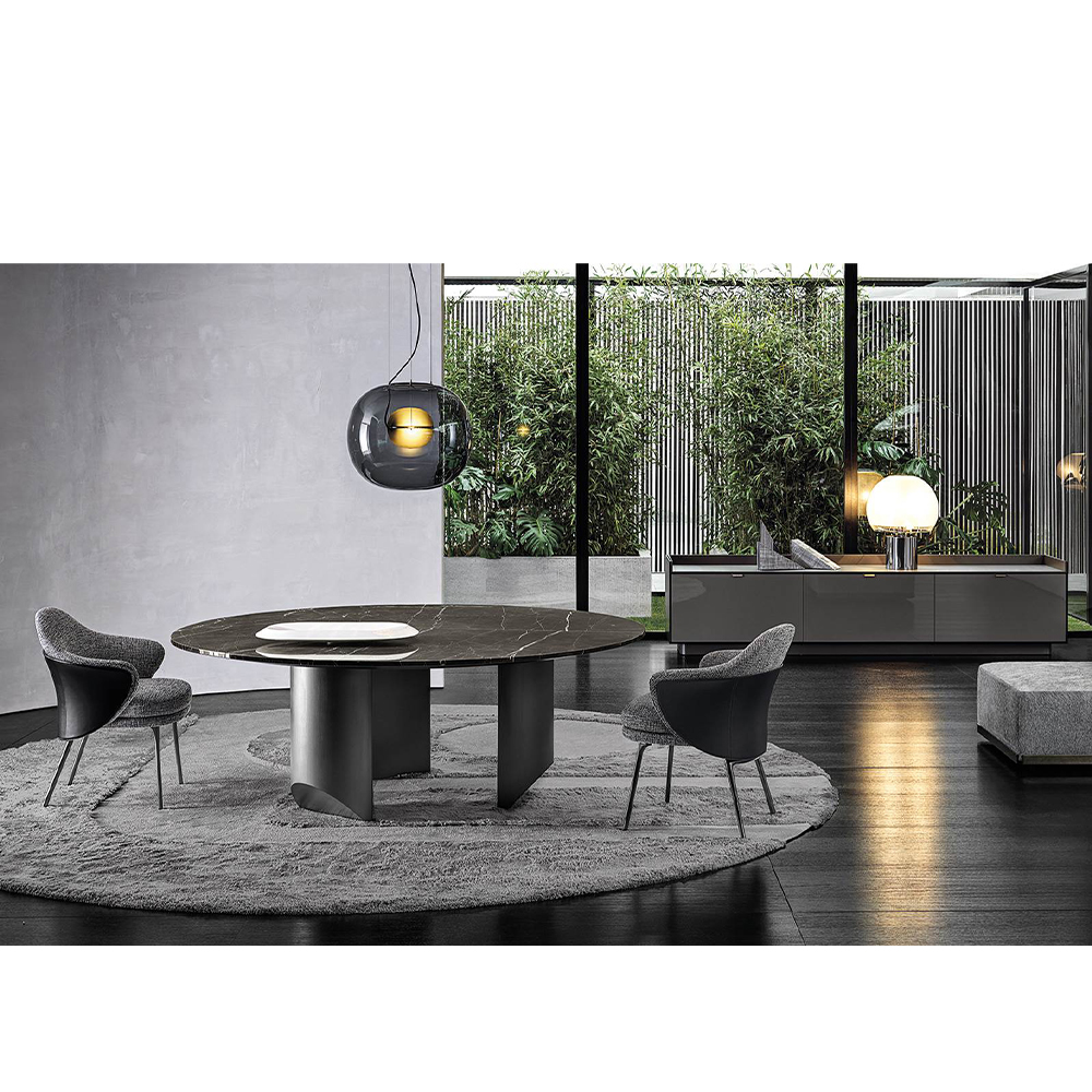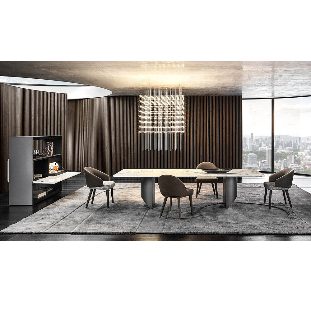 The material selection for the Monolith collection reflects our deep expertise as a premier China furniture factory. We utilize natural stones and premium sintered stone surfaces that are treated to maintain their luster in diverse global climates. This commitment to material integrity is essential for high-end projects where the dining table serves as the central hub of the home. Our specialized surface treatments ensure the tabletop remains heat-resistant and non-porous, embodying the professional quality expected from a world-class Foshan furniture factory with over twenty years of experience in high-stakes international developments.