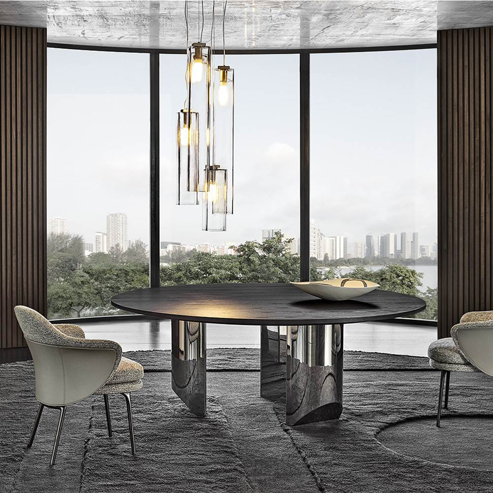 The application scenarios for the Monolith series are exceptionally diverse, making it a valuable asset for upscale project landings across Southeast Asia. In a luxury Singaporean penthouse, the circular versions provide a fluid, social atmosphere, while the elongated rectangular tables anchor grand dining halls in the high-end villas of Thailand and Vietnam. As a leading Foshan furniture factory, we have designed this series to provide the visual lightness of modern design with the structural gravitas required for 5-star hotel restaurants and executive corporate lounges where first impressions are paramount.