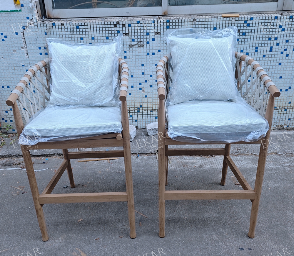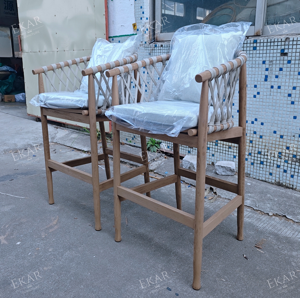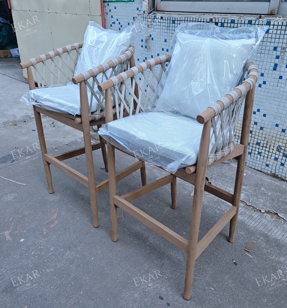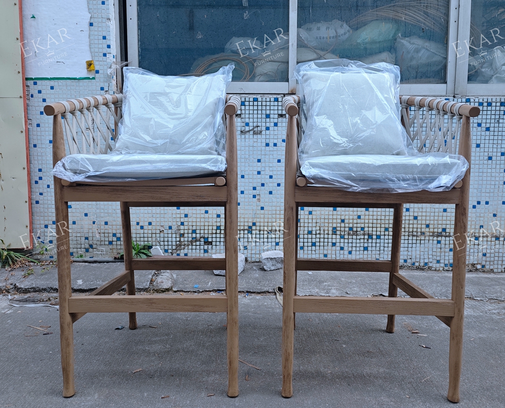 Where does it shine? On your balcony: Pair two with a slim bar table for intimate evenings with a glass of wine, no more cramped seating. At your garden bar: Line them up for weekend BBQs, where friends can perch while you grill. By the poolside: They’re tough enough to handle splashes, so you can grab a seat right after a swim. Even in a rooftop lounge: Their sleek, natural look fits right in with city views and potted plants.