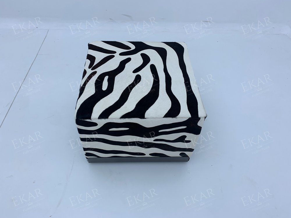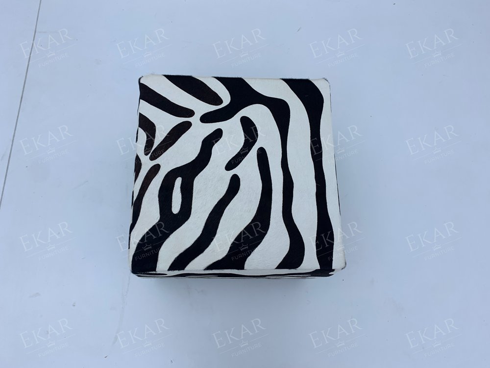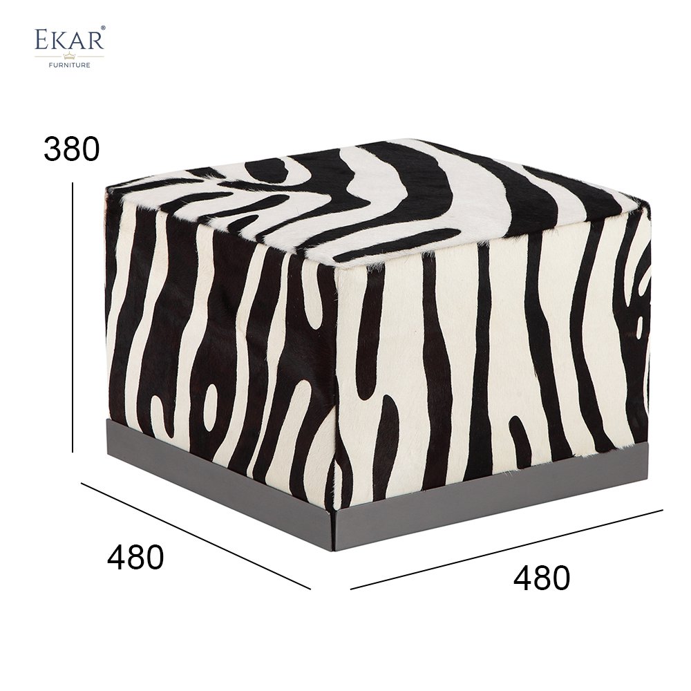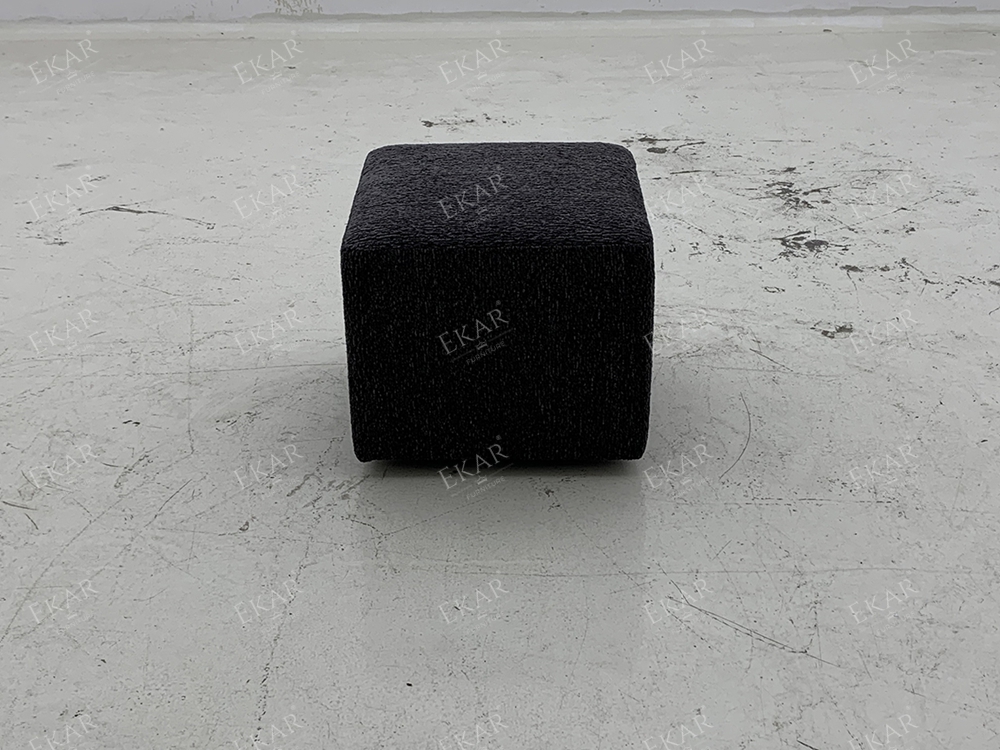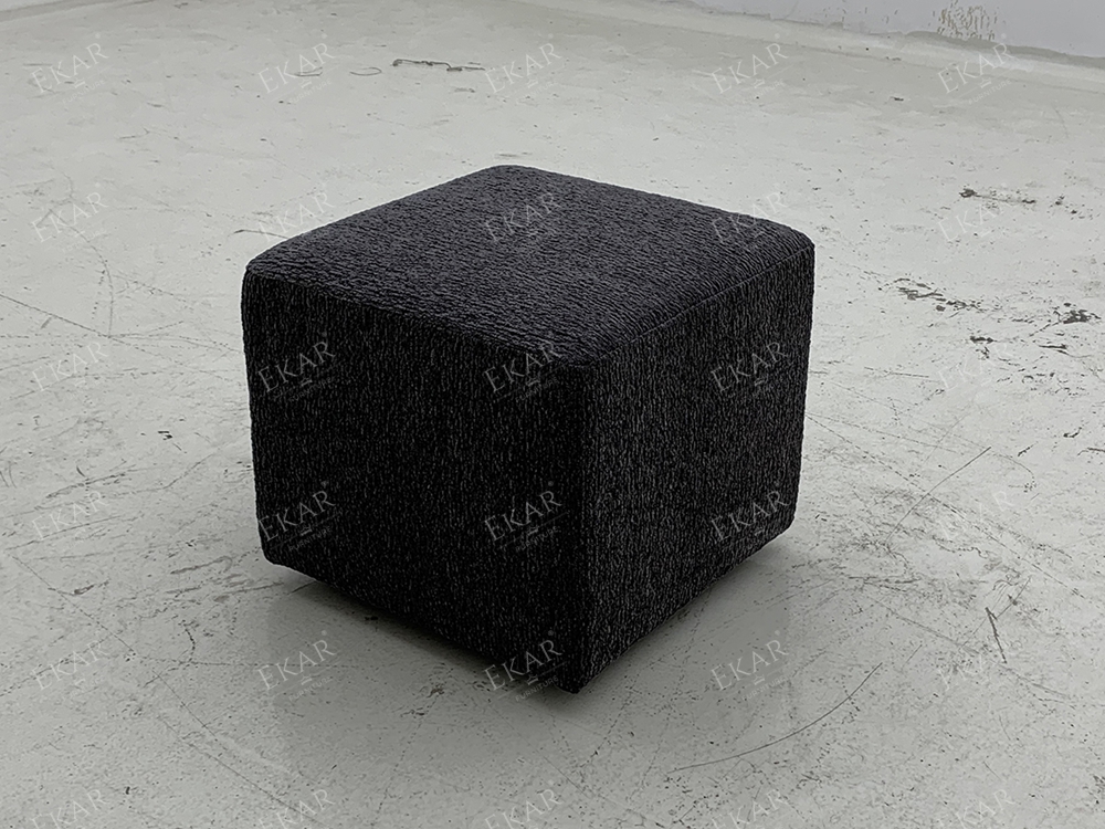 A: Yes. Graphic pattern and animal-print upholstery — including black-and-white stripe and zebra print — are available through EKAR's OEM programme. Custom pattern fabric can also be submitted by the buyer for production. This option is popular for hotel lobby accent pieces, boutique interior design projects, and living rooms where the ottoman is intended as a decorative focal point.